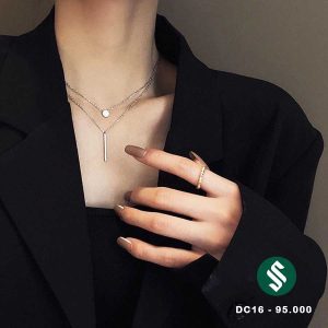 - Tên sản phẩm: Dây chuyền dây kép mặt đá tròn và thanh chữ nhật