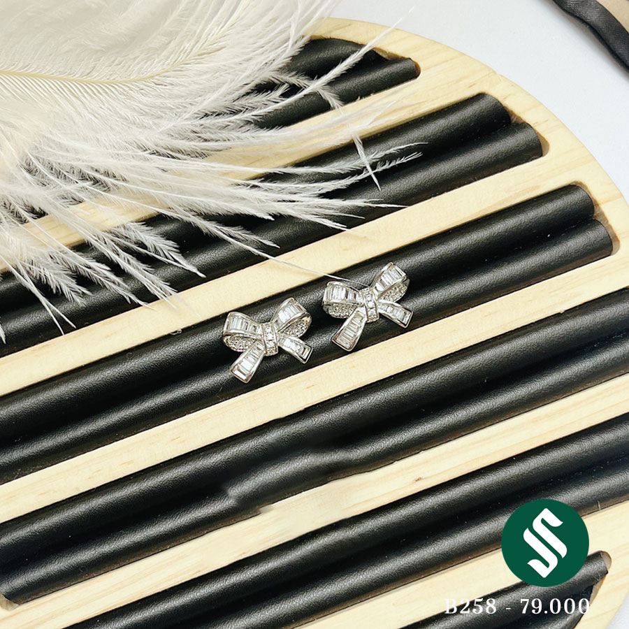 Khuyên chất liệu bạc 925 sáng đẹp, form cứng cáp, dễ làm sáng. Thiết kế nơ rất dễ thương.