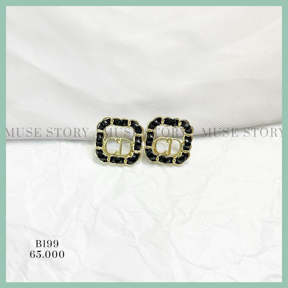 Khuyên tai CD vuông đan da