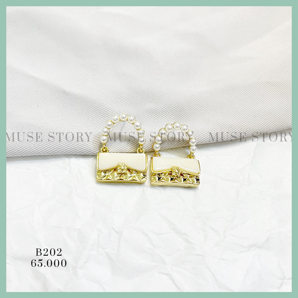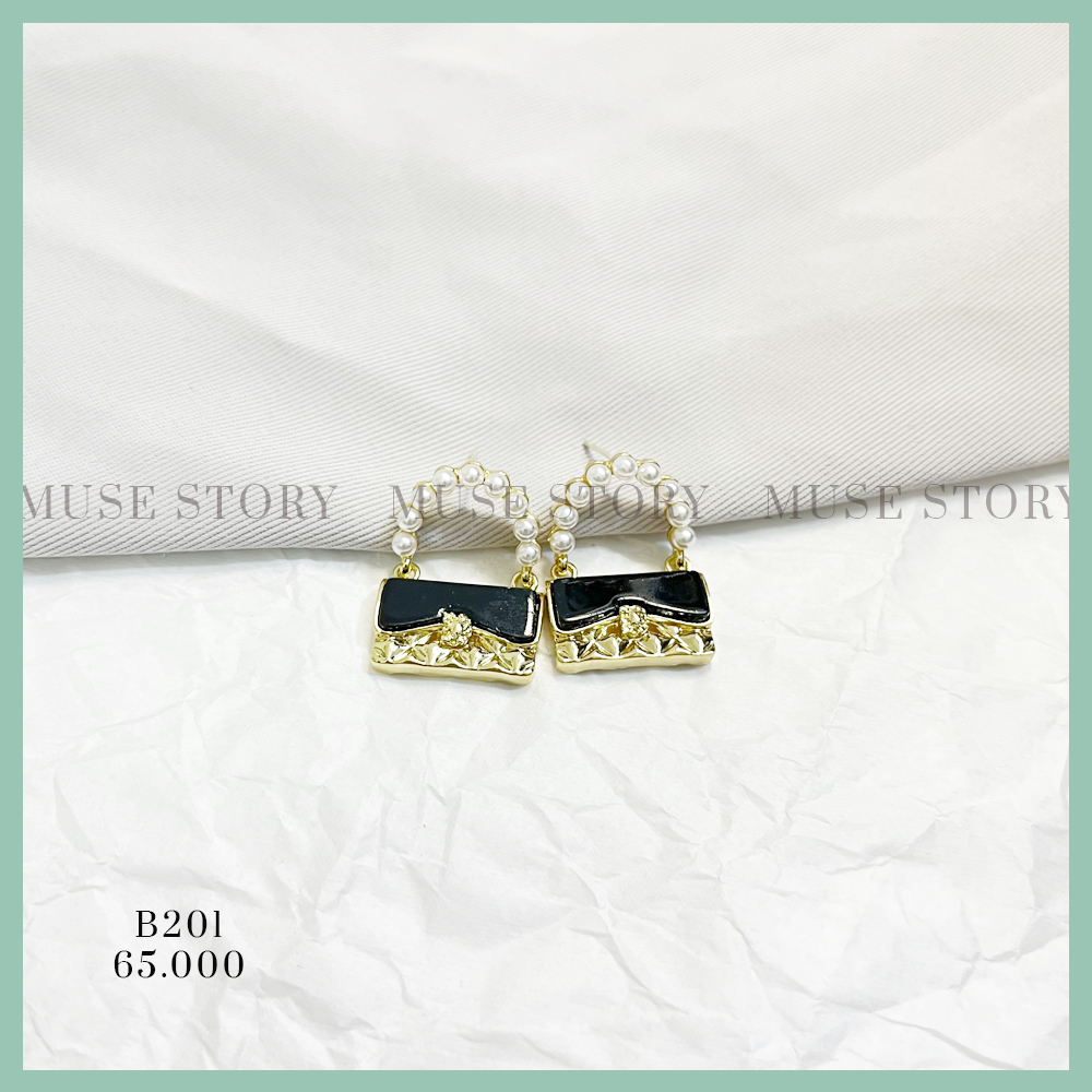 Khuyên tai hình túi xách đính ngọc vô cùng nổi bật, chui xỏ mạ bạc 925 hạn chế dị ứng tối đa.