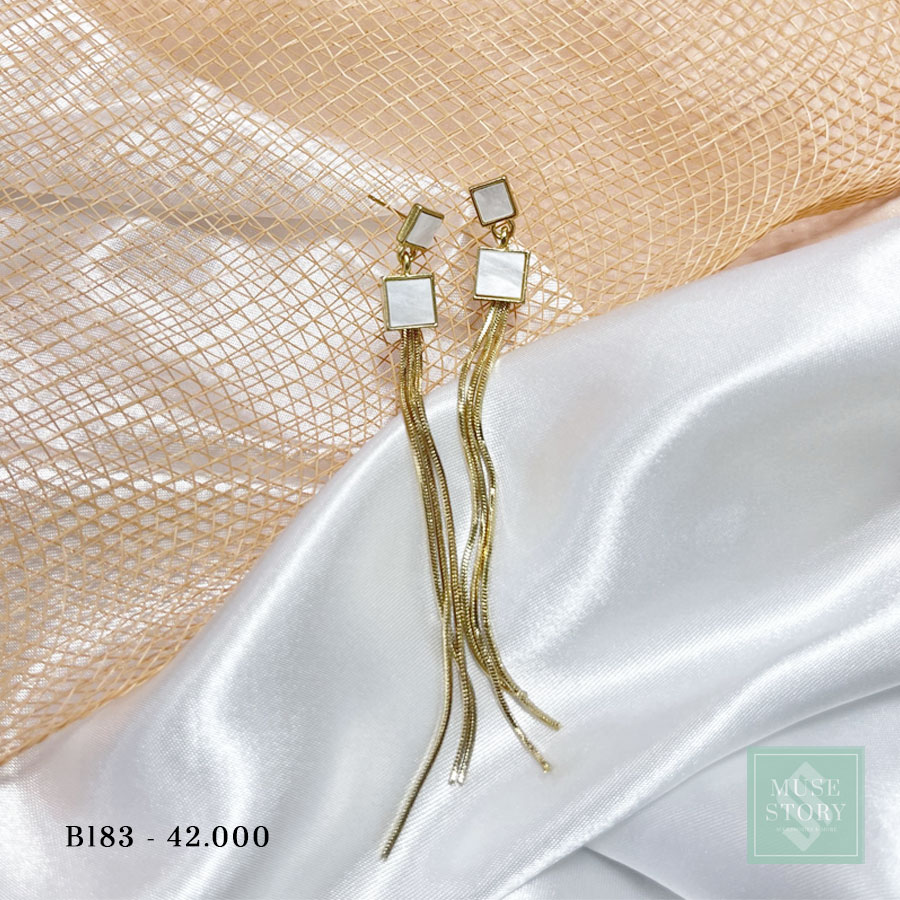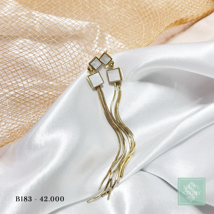 Khuyên tai dáng dài tua rua ánh vàng kết hợp mặt đá trắng khiến bạn không kém phần thu hút. Chui xỏ bạc 925 hạn chế dị ứng.