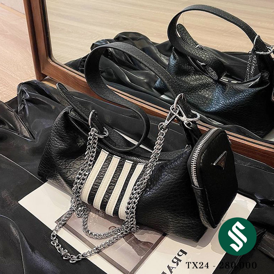 Dây quai da kẹp nách & dây quai xích có thể đeo chéo hoặc tùy chỉnh.